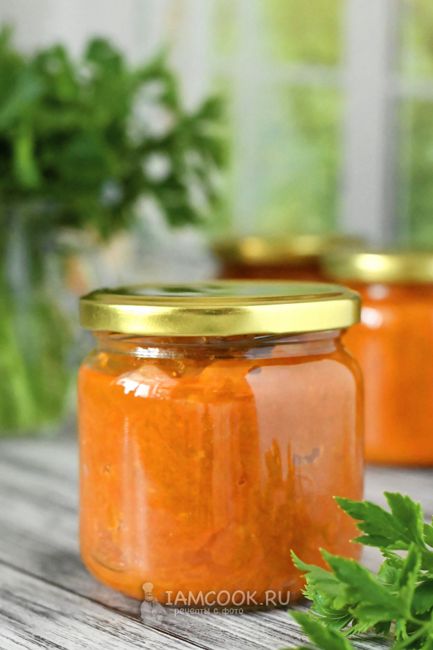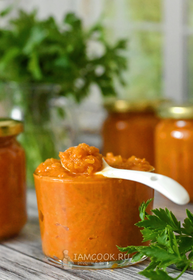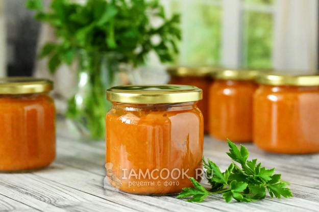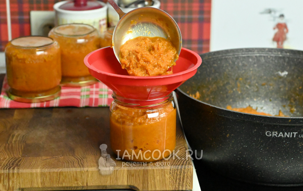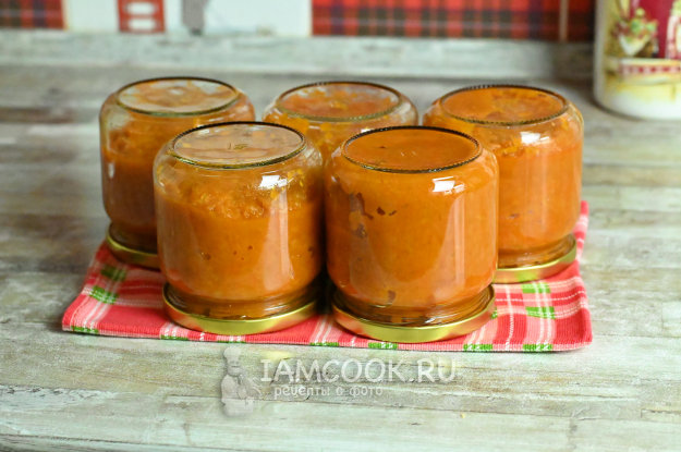 Разложите горячую кабачковую икру в банки и завинтите крышками плотно.