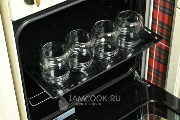 Банки я стерилизовала в духовке 20 минут при 120°С. А крышки просто прокипятила в кастрюльке 5 минут.