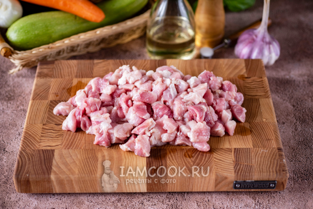 Свинину нарежьте небольшими кусочками.