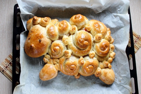 Наша Овечка из дрожжевого теста готова. Приятного чаепития!