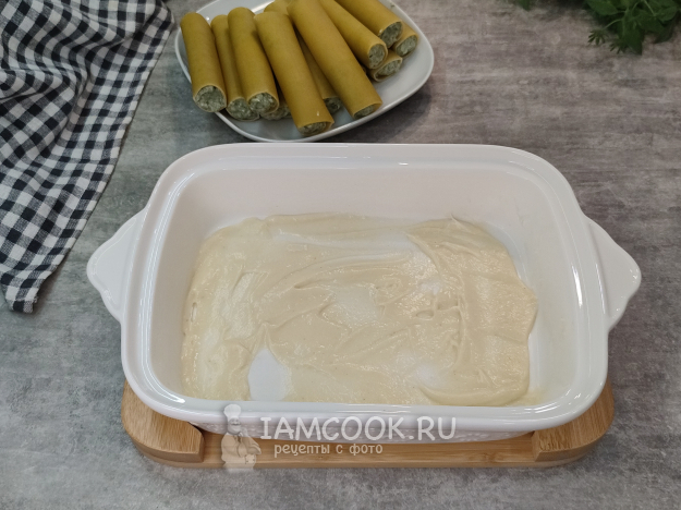 Дно формы для запекания смажьте небольшим количеством (1,5-2 ст.л.) соуса.