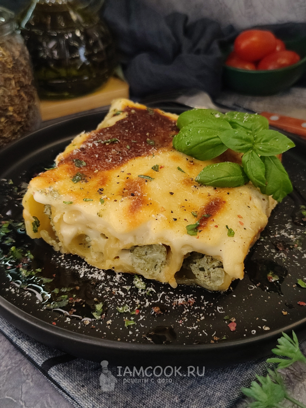 По желанию при подаче можно присыпать каннеллони смесью перцев, тертым пармезаном, базиликом, сбрызнуть ароматным оливковым маслом - все это будет неким дополнительным соусом для нашего блюда.