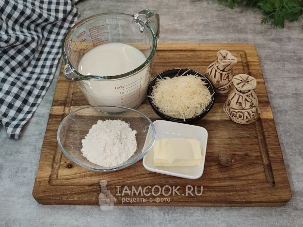 Также подготовьте необходимые ингредиенты для приготовления соуса, в котором мы будем запекать пасту. Вместо пармезана подойдет любой другой твердый сыр, можно и совсем без сыра, но с ним, безусловно, получится вкуснее.
