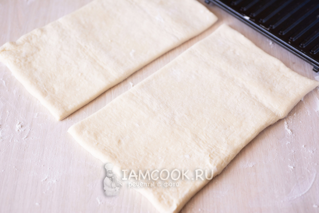 Один прямоугольник теста выложите на панель "Гриль", которую предварительно смажьте тонким слоем растительного масла.