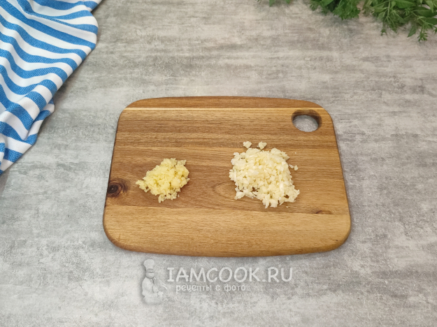 Далее в ту же сковороду (ее можно либо помыть, либо протереть бумажными полотенцами) выкладываем чеснок и имбирь, при необходимости добавляем пару ложек масла. Обжариваем на среднем огне секунд 20-30.