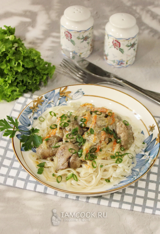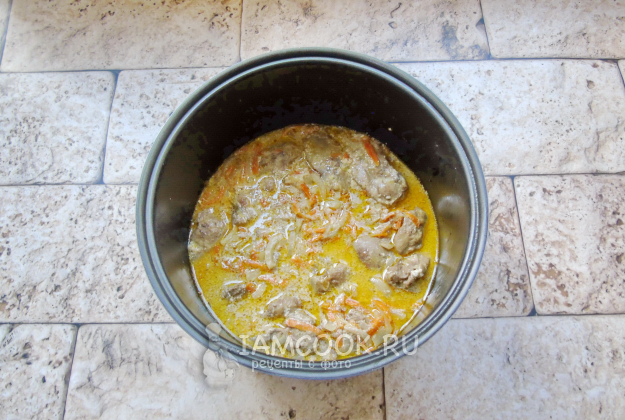 Готовьте куриную печень в сметане в мультиварке на режиме «Тушение» 20 минут.