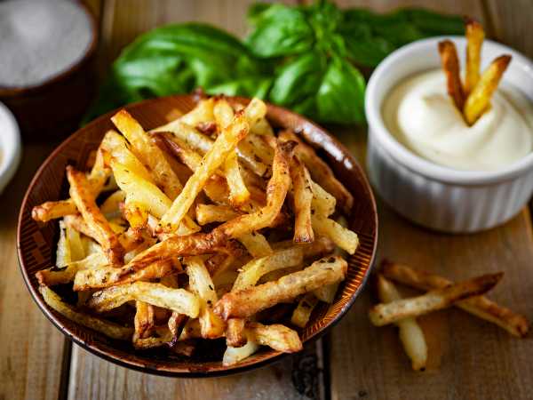 По окончании работы аэрогриль издаст звуковой сигнал. Откройте корзину и достаньте форму.