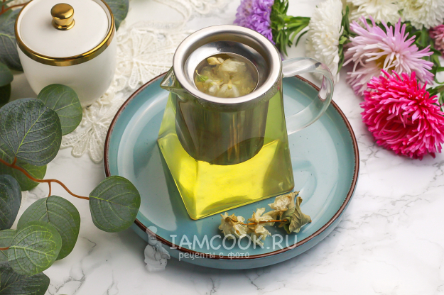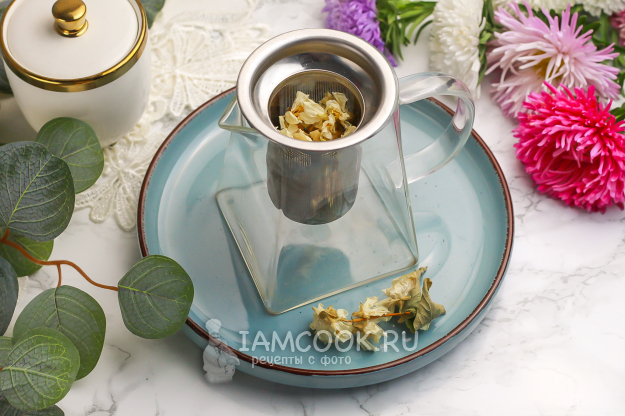 Вскипятите воду в чайнике или в ковше, кастрюле. В заварочный чайник поместите примерно 30 г сушеных цветков.