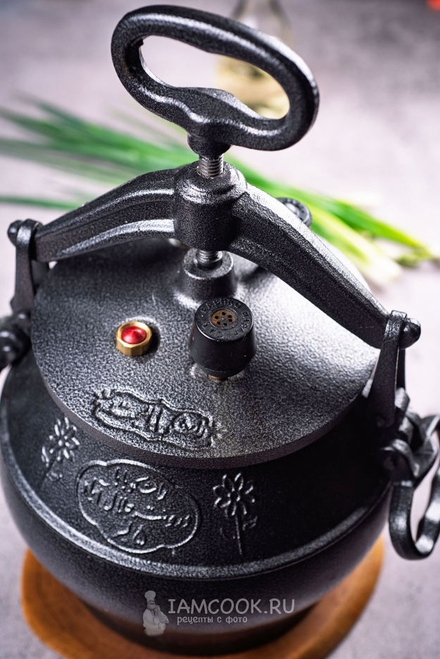 Закройте герметично казан крышкой и поставьте на плиту - я ставлю на самую мощную конфорку. На максимальном огне готовьте до момента, как пойдет из клапанов пар, затем огонь убавьте до минимального (или почти минимального) и готовьте рассольник в афганском казане 35 минут. После чего выключите огонь и через 3-4 минуты открывайте крышку казана. Рассольник готов!