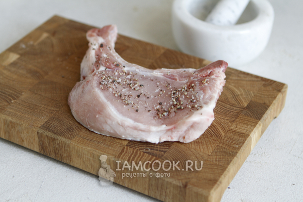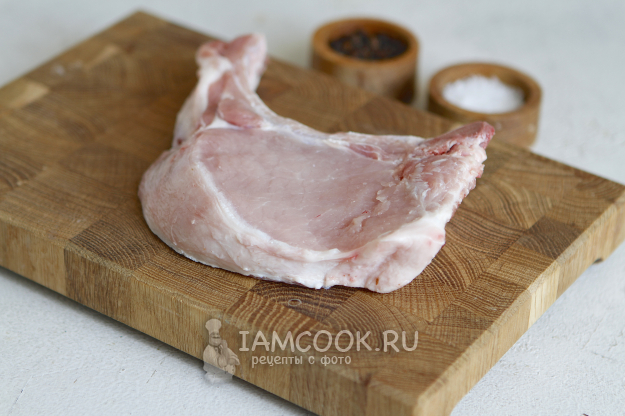 Я выбрала корейку на косточке, и один кусок у меня вышел 470 г. Мясо помойте и обсушите бумажным полотенцем.