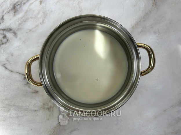 Налейте соевое молоко в небольшую кастрюлю и доведите до кипения на среднем огне.