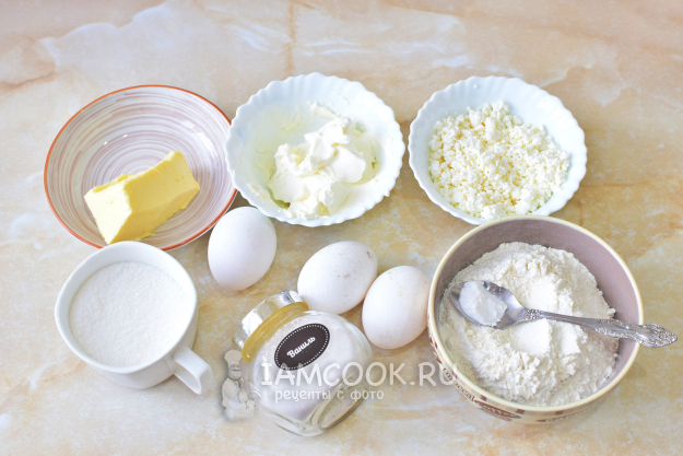 Для приготовления творожного кекса с маскарпоне в духовке соберите необходимые ингредиенты. Сливочное масло заранее вытащите из холодильника, чтобы оно стало мягким. Можно немного подтопить его в микроволновой печи, но не до жидкого состояния. Муку просейте через сито, чтобы насытить её кислородом. Это сделает выпечку воздушнее.