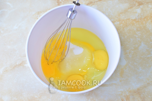 Для теста соедините яйца с сахаром. Взбейте их в пену.