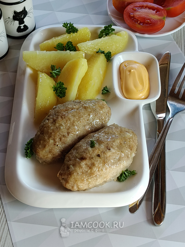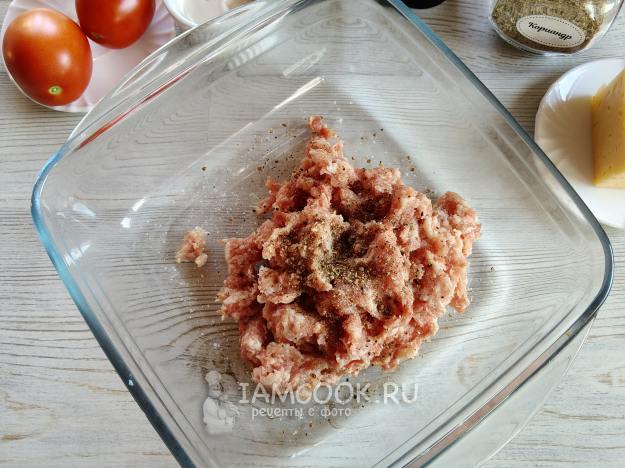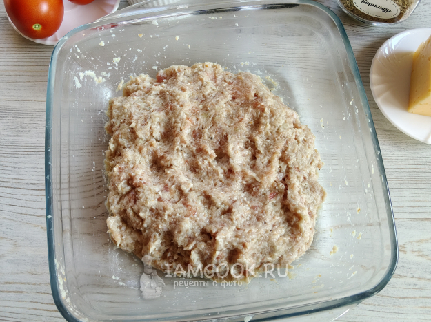 Котлеты с начинкой в духовке я готовила из домашнего фарша из свинины.