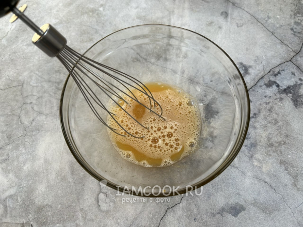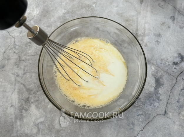 Взбейте яйца с добавлением сахара, щепотки соли и ванилина до однородности.