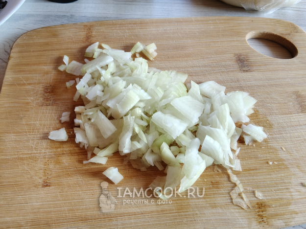 Лук мелко нарезать.