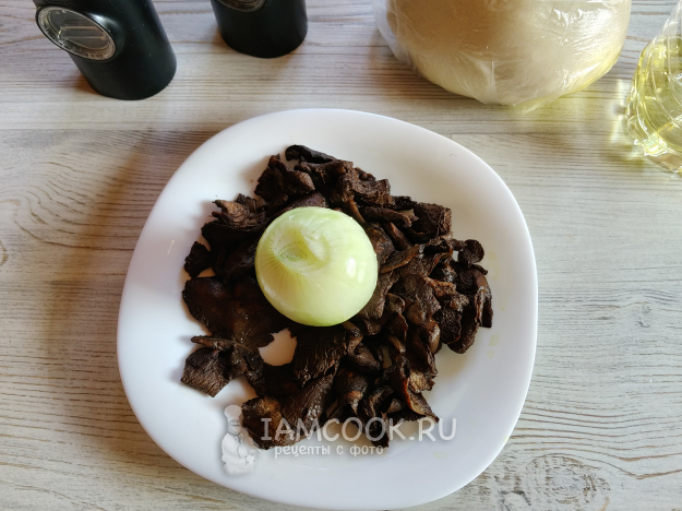 Лесные грибы у меня уже были нарезанные и отваренные.