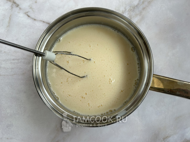 Влейте к молоку яичную массу, постоянно помешивая.