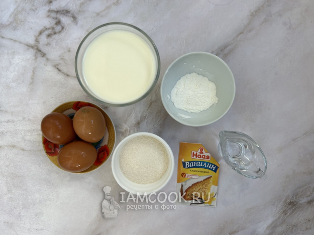 Соберите все необходимые ингредиенты для приготовления карамельного пудинга по списку.