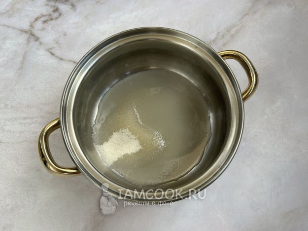 В небольшой кастрюле смешайте сахар с водой, поставьте на средний огонь.
