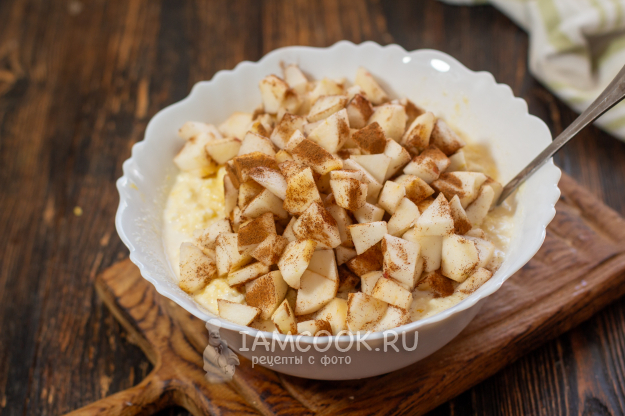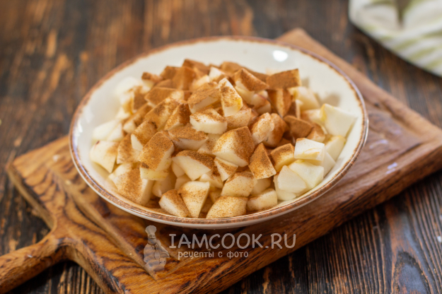 Добавьте яблоки с корицей и тщательно перемешайте.