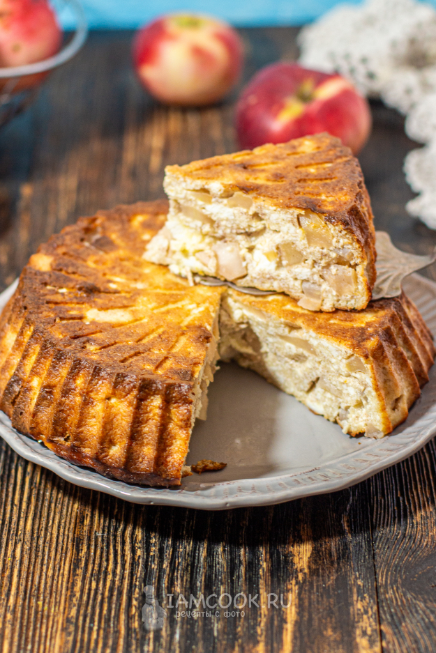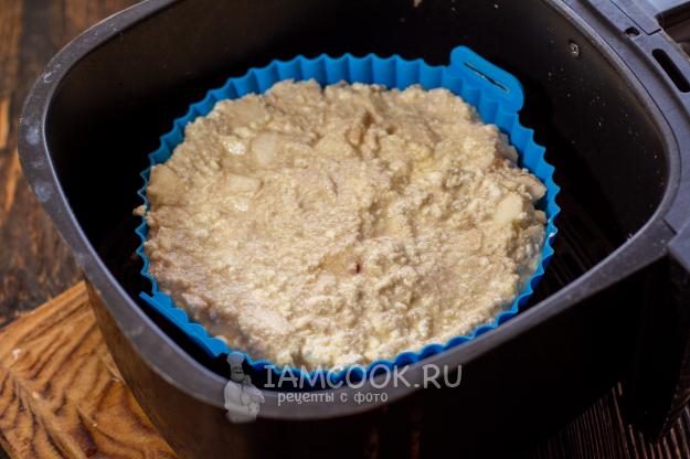 Переложите творожную массу с яблоками в форму для выпекания и установите в чашу аэрогриля. Установите время приготовления - 40 минут. Температура - 170 градусов. Готовьте творожную запеканку с яблоком в аэрогриле до окончания программы. Готовность можно проверить деревянной шпажкой, она должна выйти абсолютно сухой из середины запеканки.