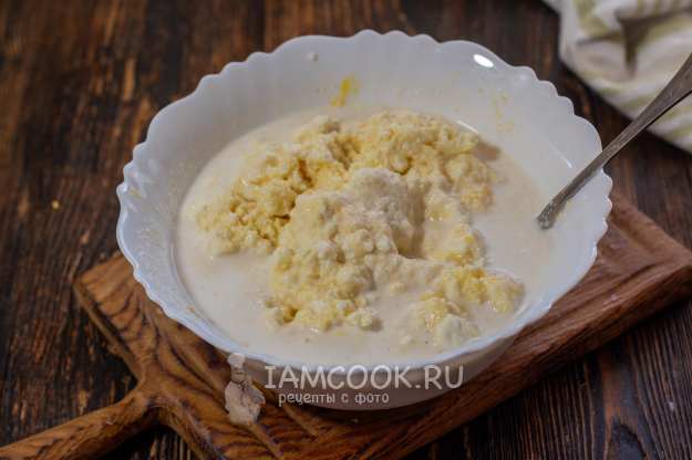 К творожной массе добавьте набухшую манку. Перемешайте.