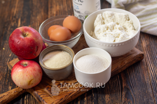 Соберите необходимые продукты для приготовления творожной запеканки с яблоками в аэрогриле. Этот вариант запеканки я приготовила с манной крупой. Вам понадобятся сухой творог, свежие яблоки и немного молока. Мне очень нравится аромат корицы, поэтому я добавила к яблокам немного молотой, но если вы не любите, то не добавляйте ее, а замените на ванилин и цедру лимона.
