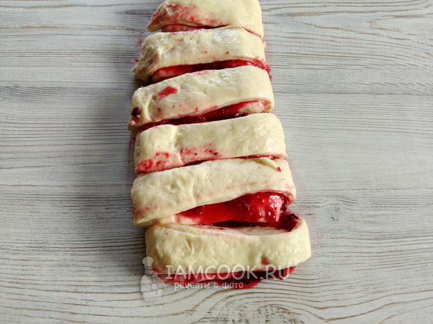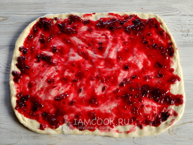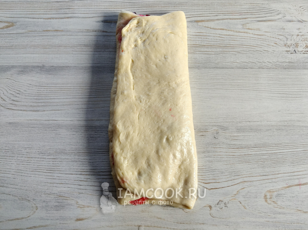Тесто размять или раскатать в пласт (можно прям потоньше).