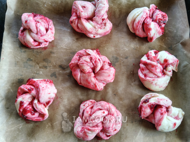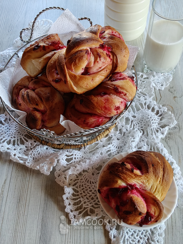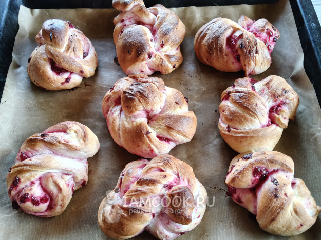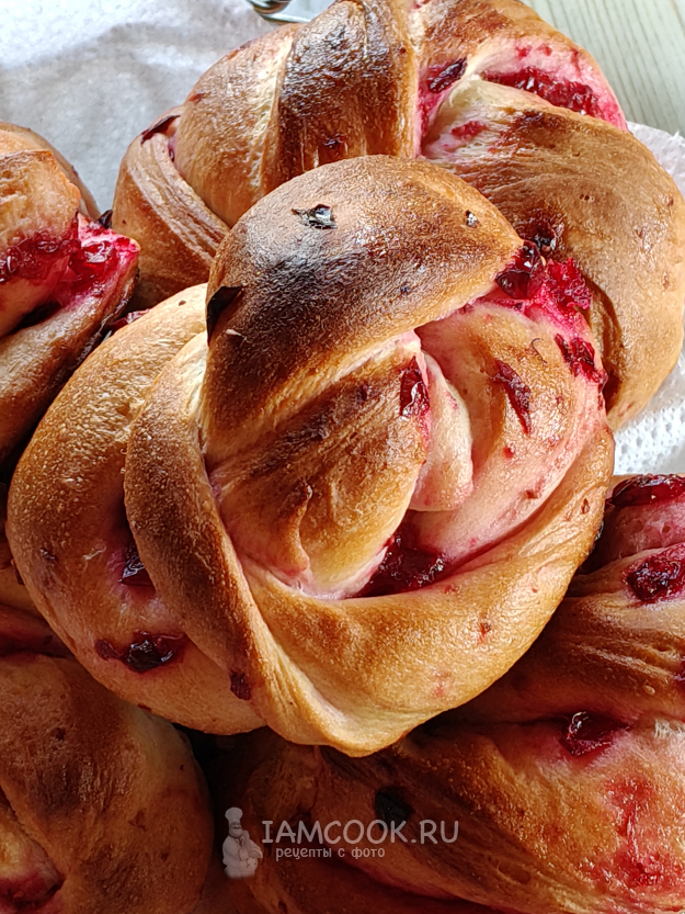 Булочки с клюквой выпекать при температуре 180 градусов до румяного состояния.