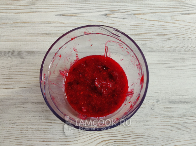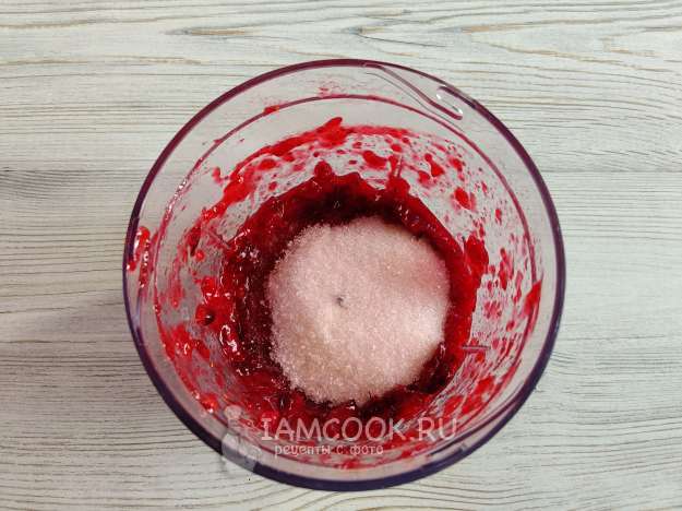 Ягоду измельчить в блендере или размять толкушкой. Добавить сахар.