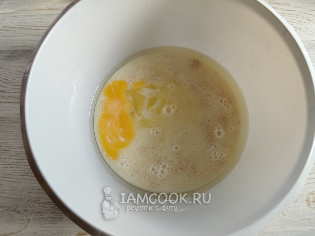 В теплое молоко добавить сахар и дрожжи. Влить масло.