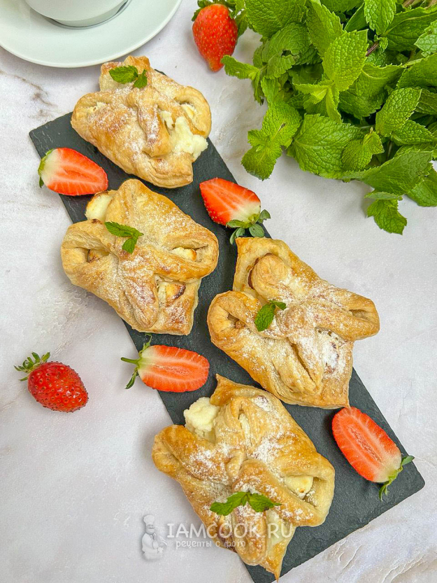 Булочки из слоеного теста с маскарпоне готовы к подаче на стол. Приятного аппетита!