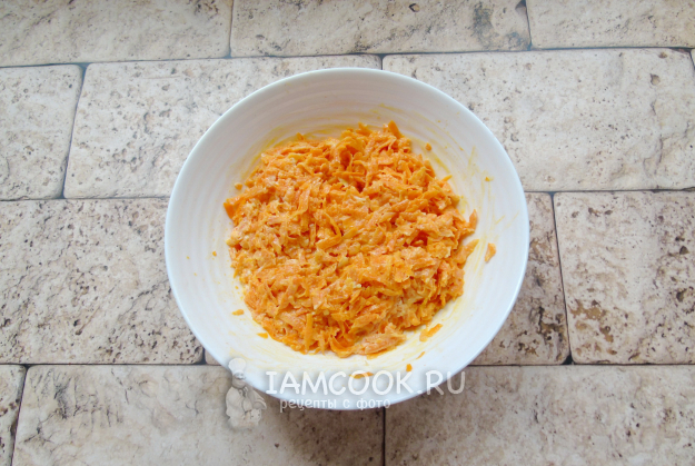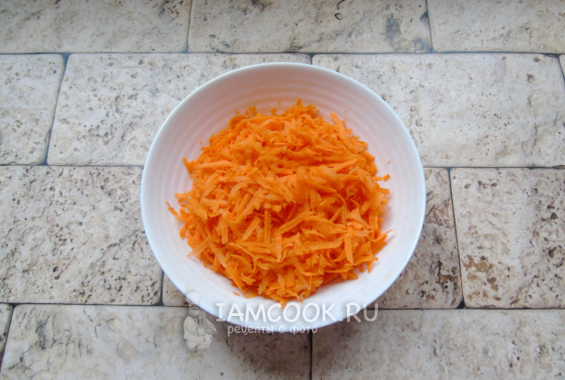 Морковку очистите, помойте и натрите на терке с крупными отверстиями.
