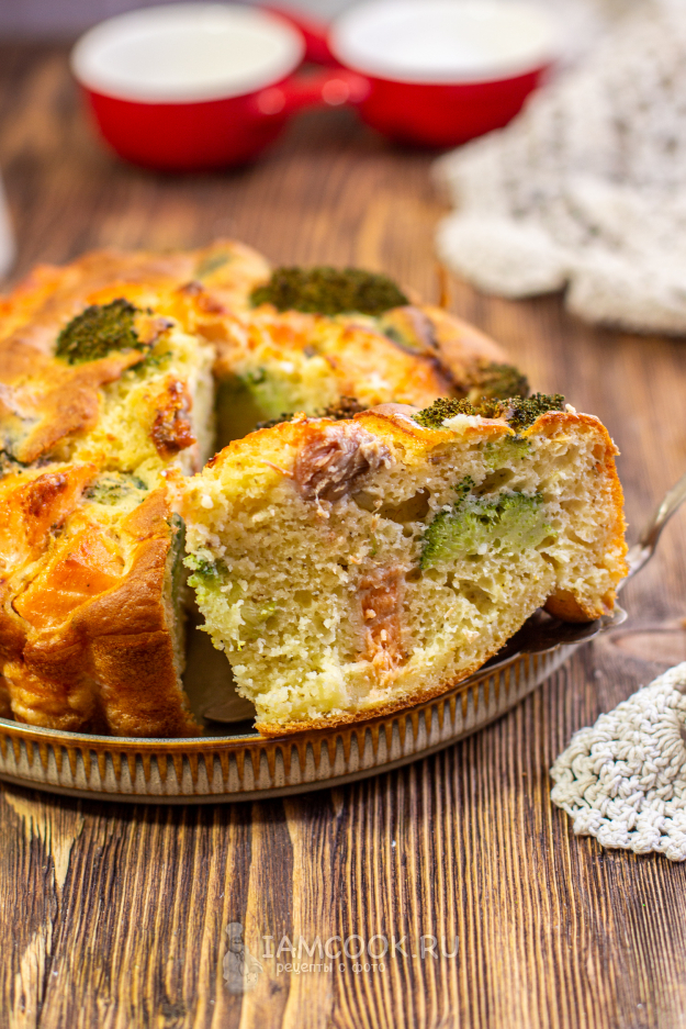 Заливной пирог с брокколи и рыбой вкусно подавать полностью остывшим. Приятного аппетита!