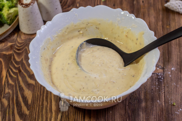 Перемешайте, чтобы получилось наливное тесто без комочков. Консистенция теста должна быть примерно как на оладьи.