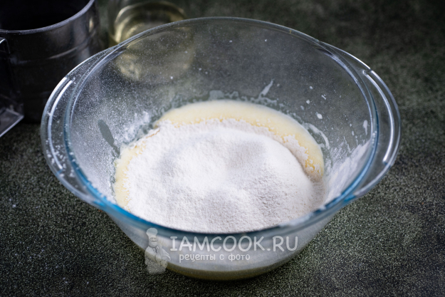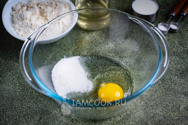 В просторную миску вбейте яйцо и добавьте сахар, соль.