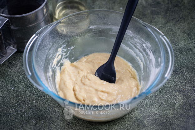 Лопаткой перемешайте все ингредиенты до получения однородного вязкого теста.