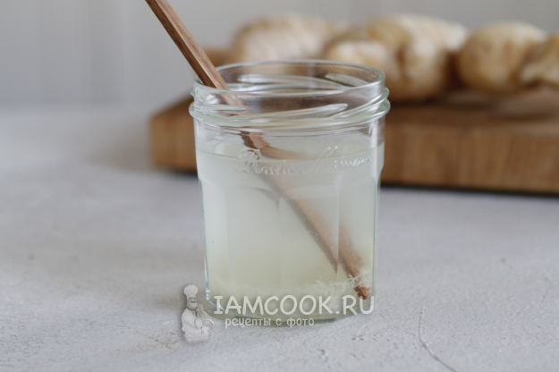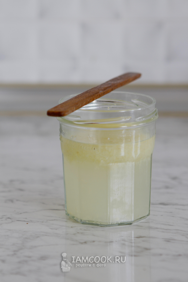 Оставшуюся водичку сцеживаем с имбиря. Добавляем в банку примерно 20 г сахара, 20 г тертого имбиря и 60 мл воды. На второй день можно покормить просто по схеме 10 г сахара и 10 г тертого имбиря. Такая закваска будет вести себя активнее, чем приготовленная с нуля. Далее продолжайте кормить по схеме или уберите в холодильник.