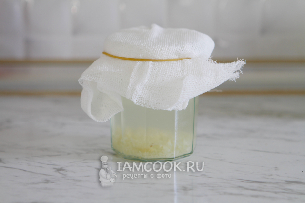 Банку прикройте дышащей тканью или крышкой, плотно не закрывайте, так как нужен доступ к кислороду.