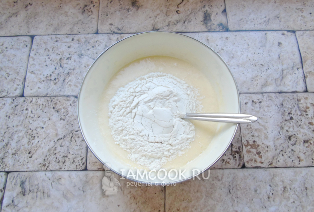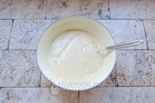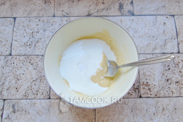 Разбейте в миску яйца, насыпьте ванильный сахар и перемешайте.