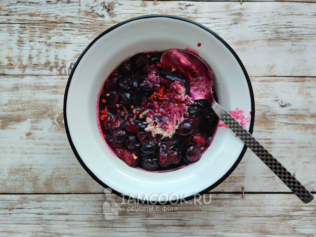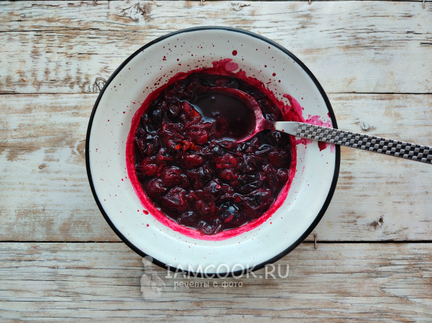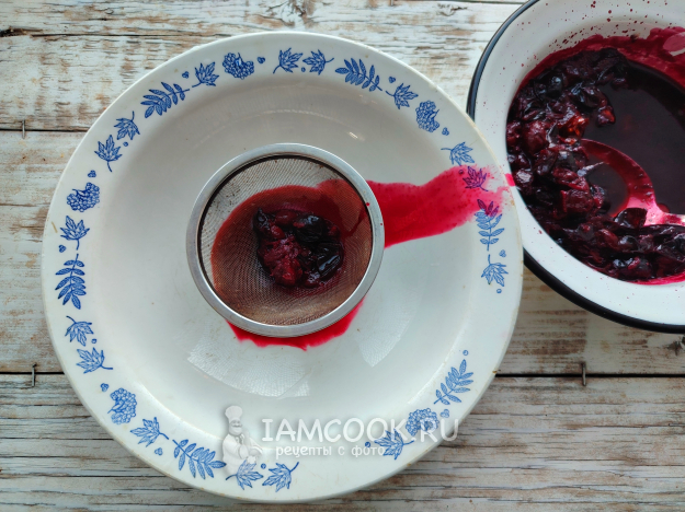Снять заготовку с огня. Протереть содержимое посуды через сито, удаляя косточки и кожицу.