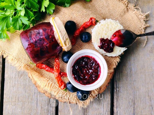 Аджика из терна на зиму готова. После остывания баночки можно убрать в холодильник на хранение до зимы. Приятного аппетита!