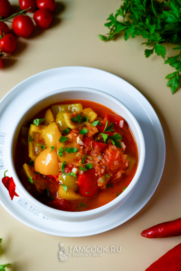 В конце обжаривания добавьте сванскую соль или специи и соль по вкусу. Помидоры уже мягкие, часть помидорного сока выпарилась, перцы сохранили форму, остались слегка хрустящими - все, как я люблю. По желанию блюдо можно готовить немного дольше, чтобы овощи стали еще более мягкими.