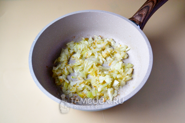 На растительном масле обжарьте до золотистого цвета лук.