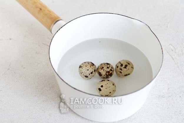 В слегка подсоленной воде отварите перепелиные яйца.