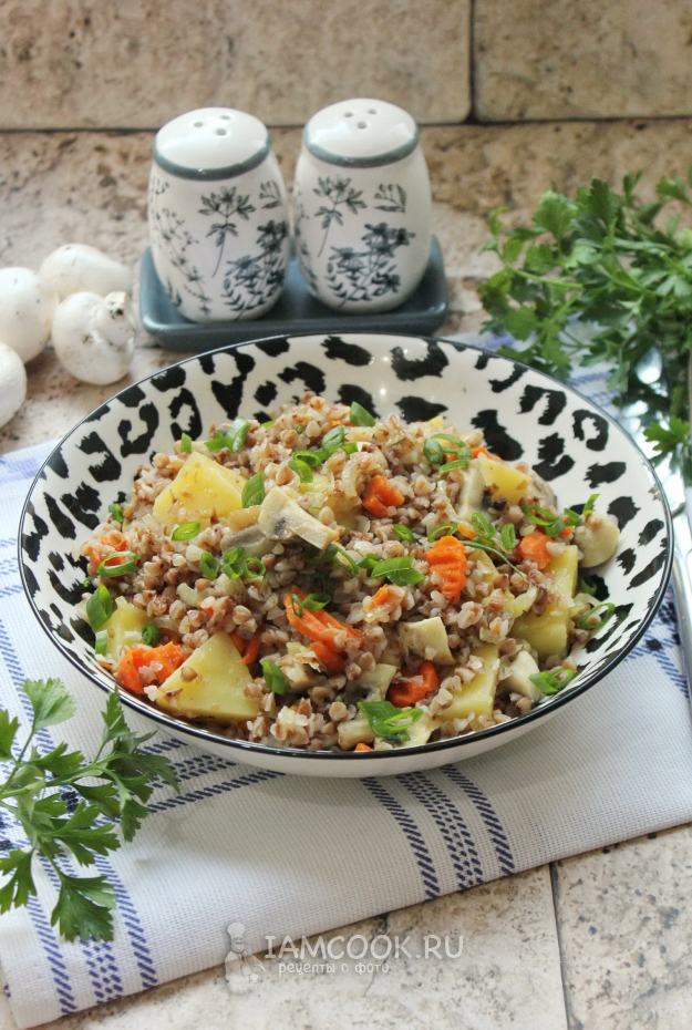 Ароматная и вкусная гречневая каша с картошкой готова.