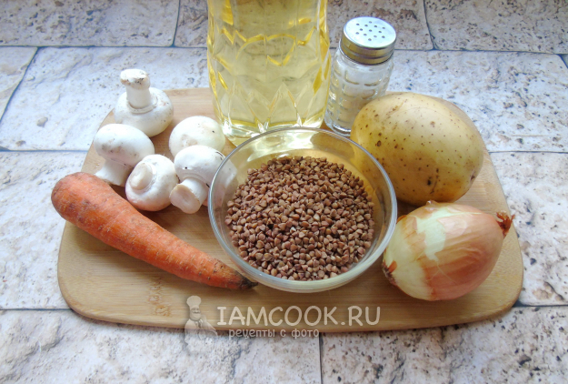 Соберите ингредиенты для приготовления гречневой каши с картошкой по списку.
