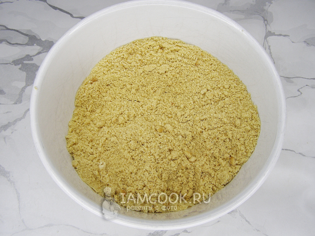 Печенье тоже измельчаем, но в отличие от орехов, печенье лучше измельчить до крошки.
