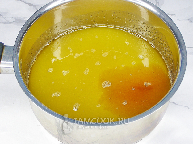 Доводим сироп до кипения и варим на среднем огне, пока сахар не растворится. Снимаем с огня и оставляем остывать.